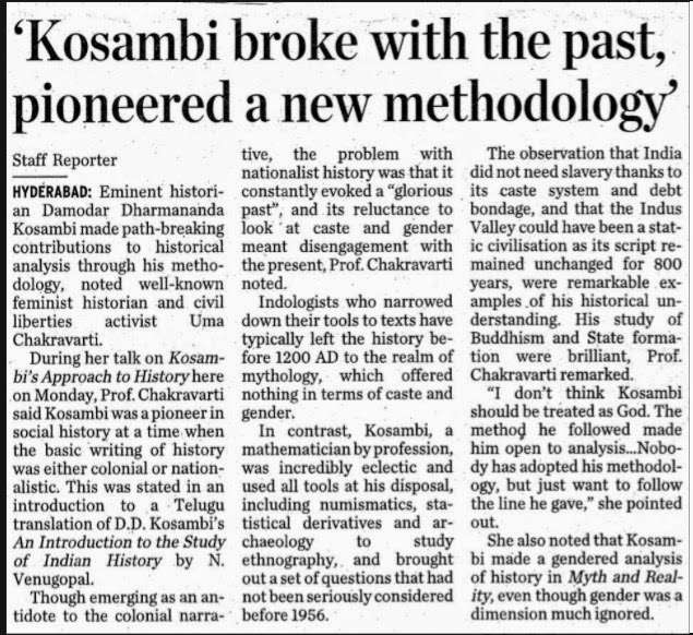 కోసంబి రచనల ప్రభావం తెలుగు మేధో ప్రపంచం మీద గత ఆరు దశాబ్దాలుగా విస్తృత,గానే వున్నప్పటికీ, ఆయన రచనలలో ప్రధానమైన ఈ పుస్తకం ఇంతవరకూ తెలుగులోకి రాకపోవడం ఆశ్చర్యం కలిగిస్తుంది.